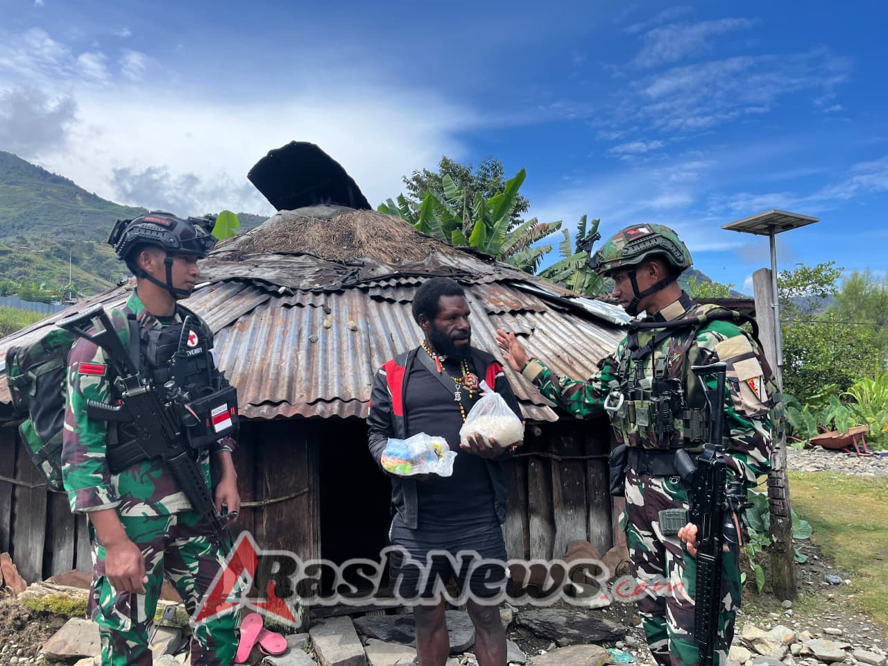 Dengan berjalan kaki menyusuri rumah-rumah warga, para Prajurit Yonif 743/PSY disambut hangat oleh mama-mama dan bapak-bapak yang sudah mengenal mereka seperti keluarga sendiri. Perjumpaan sederhana itu dipenuhi sapaan ramah, canda kecil, dan cerita tentang kehidupan sehari-hari di pegunungan Papua.
