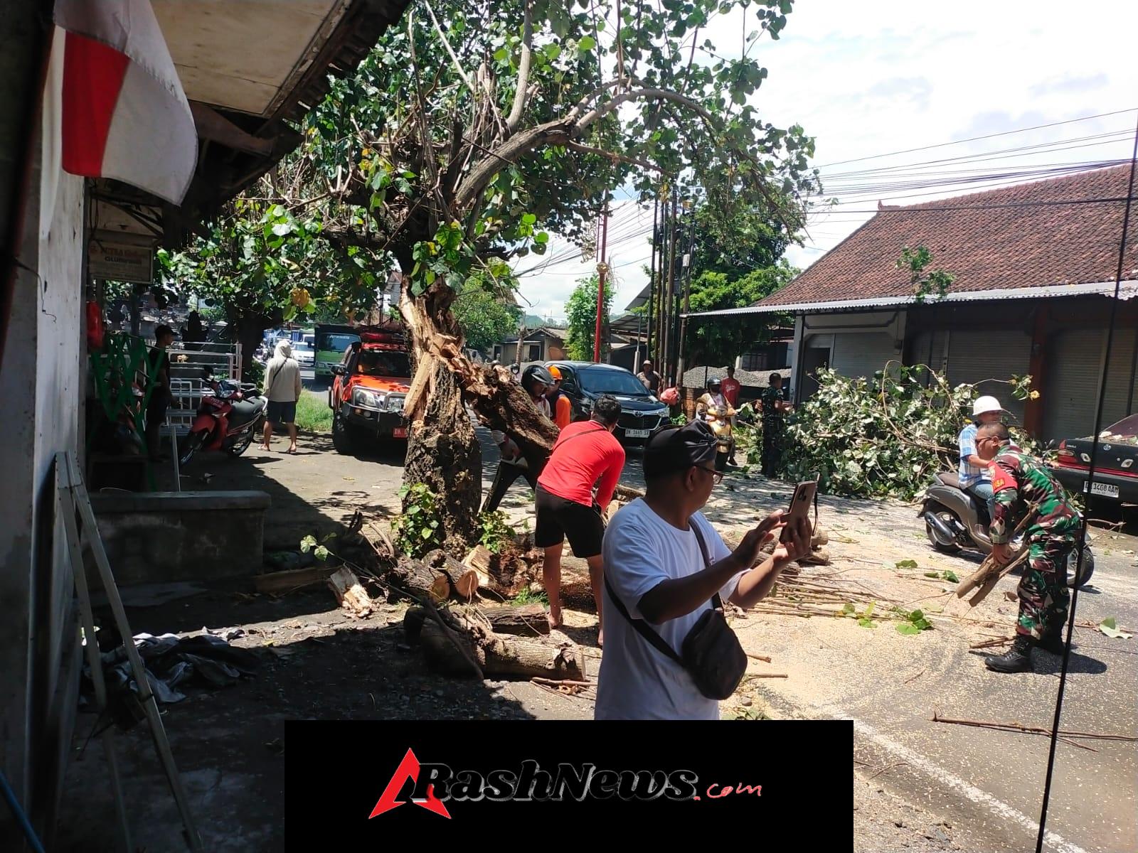 Pohon Tumbang Akibatkan Lalu Lintas Di Jalan Raya Gunaksa Terhambat, Aparat TNI Polri Dan BPBD Gerak Cepat Lakukan Penanganan